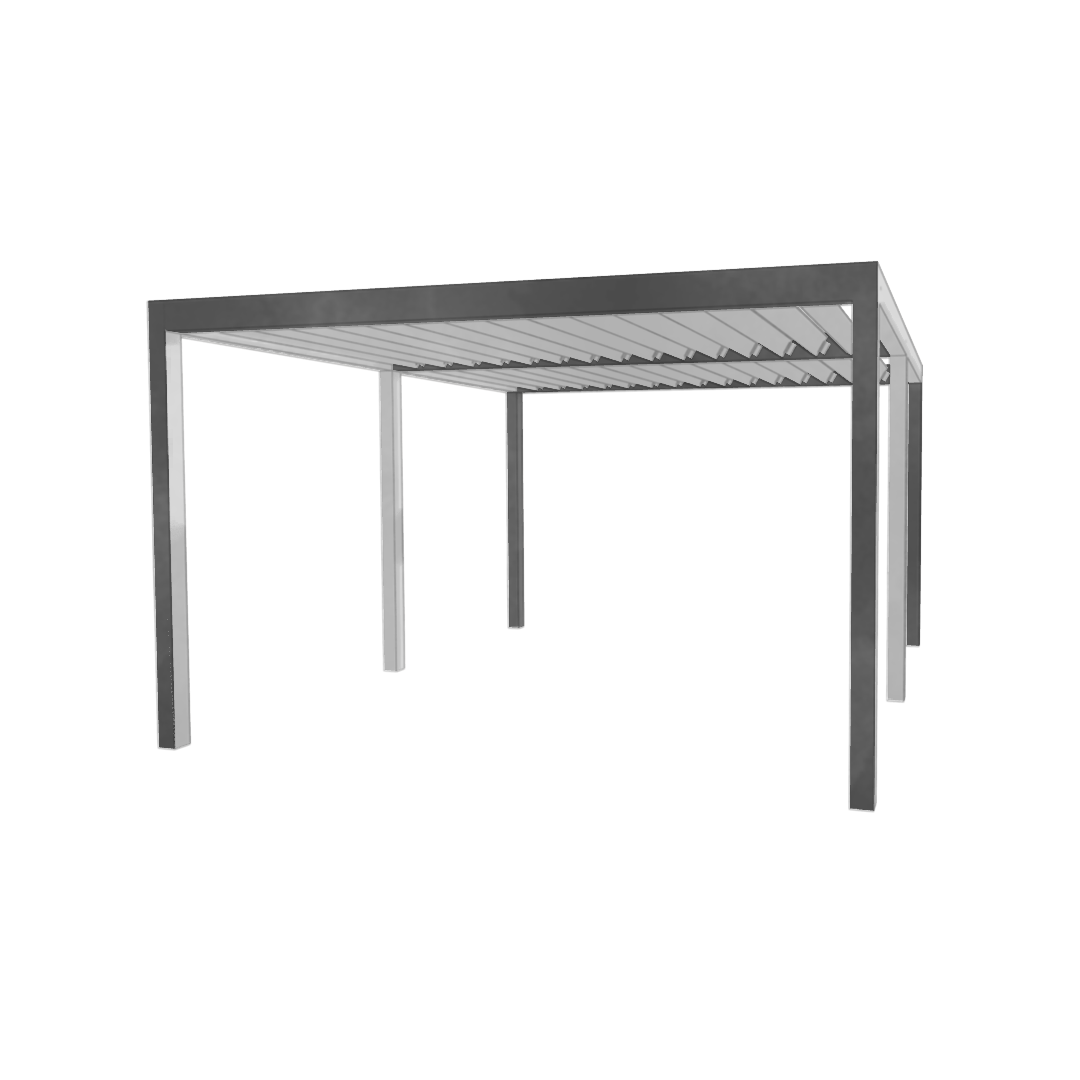 Operable louvers are available and can be adjusted manually or automatically, laying flat when closed and channeling water through integrated gutters into posts or site drains.